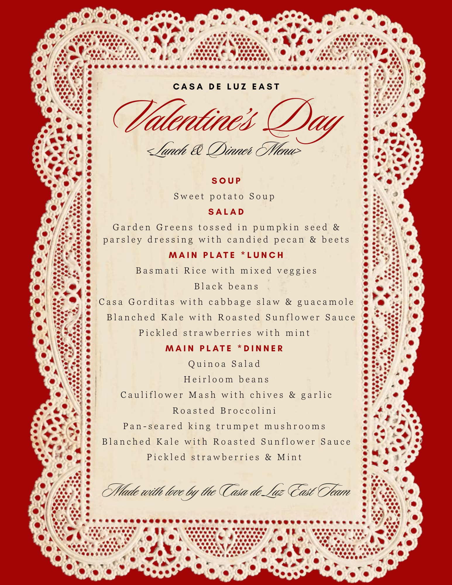 Stop by for our Valentine’s Day prix fixe meal — casual, comforting, and made to share. From rich flavors to sweet finishes, this special menu sets the stage for an unforgettable evening — perfect for date night, first dates, or longtime loves. ❤️